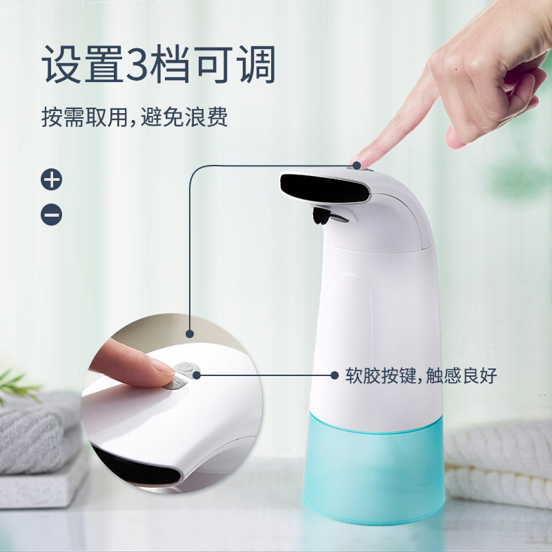 小泡泡感應(yīng)泡沫皂液器33605型號(hào):G33604防水等級(jí):IPX4主題:簡約時(shí)尚小泡泡 | 不止是泡沫器,更是浴室藝術(shù)功能介紹:第四代皂液器告別手動(dòng)給皂,洗手進(jìn)入自動(dòng)泡沫新時(shí)代免接觸使用,讓每一次洗手更潔凈,呵護(hù)全家健康280ml皂液可替換設(shè)計(jì),適用大部分給皂液空氣注入技術(shù),微米級(jí)豐盈泡沫氣泡比12:1靈動(dòng)(Liteon)雙感應(yīng)技術(shù),超低功耗,USB可充電設(shè)計(jì),6個(gè)月持久續(xù)航精密微型電機(jī),能耗更低