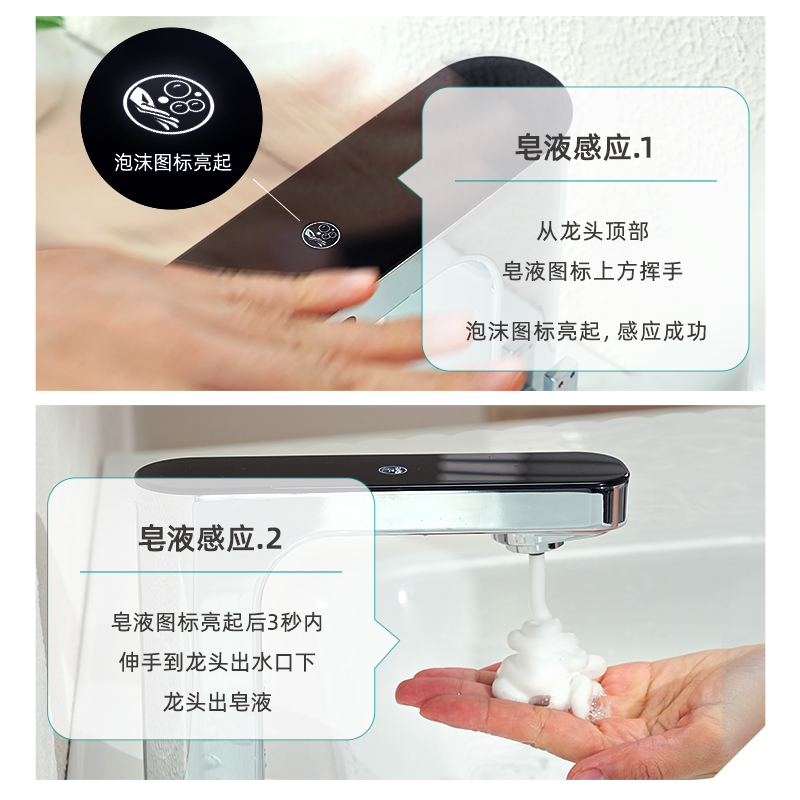 出水和皂液二合一龍頭設(shè)計 & 帶溫度數(shù)顯感應(yīng)龍頭 & TOF激光感應(yīng)器 & Liteon雙感應(yīng)技術(shù)。